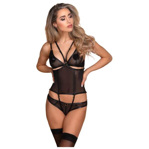 Witte Lingerie Set met Open BH, String en Jarretelles – Cottelli Collection