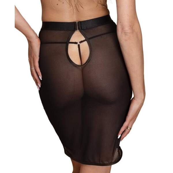Transparante Effusion Mesh Jurk met Kunstleren Ceintuur en Split – Maison Catanzaro