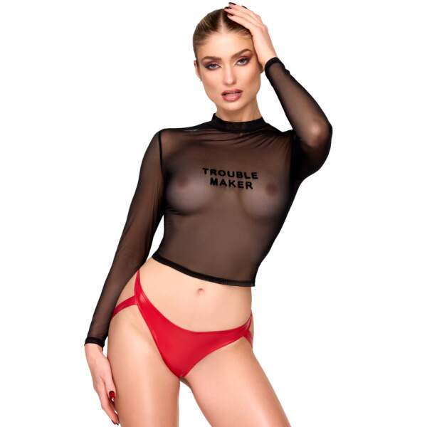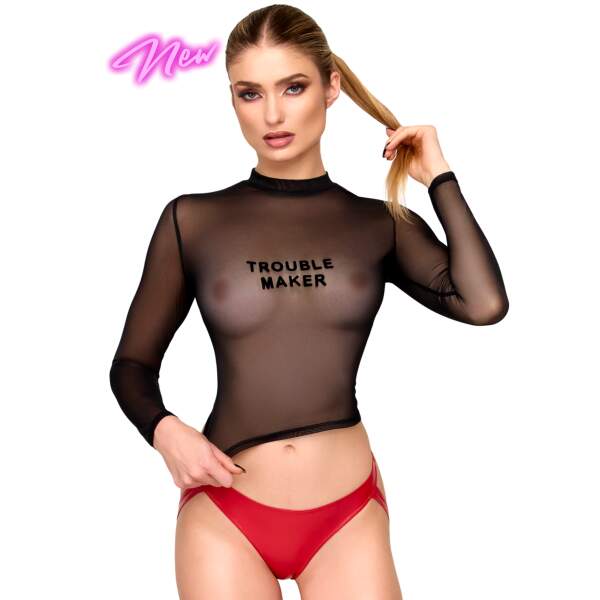 Noir Handmade – F389 Gaas Top met Lange Mouwen – Troublemaker