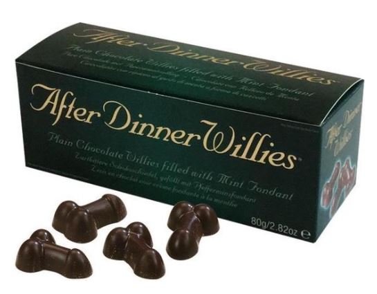 Verras je partner of visite eens met deze willies van chocolade gevuld met mint op een schaaltje. Ook leuk om een dessert mee te versieren als voorbereiding op een spannend vervolg…