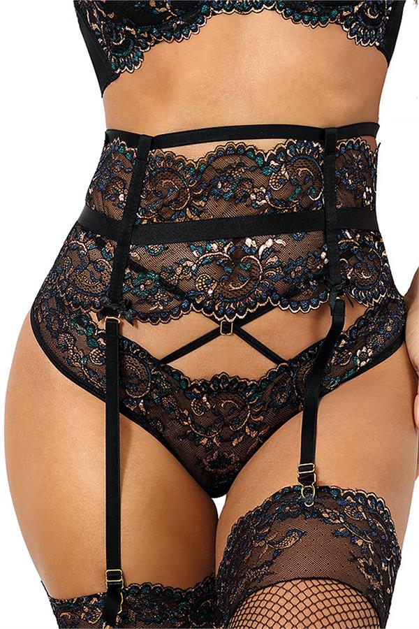 Apart bij te bestellen van de “Valley of Sensations” zijn BH, strings en kousen. Allemaal met hetzelfde blauw en goud. Een prachtige set!