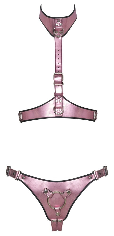 Bad Kitty Roze Metallic Borstharnas & Strap-On Jock – Set zonder Dildo