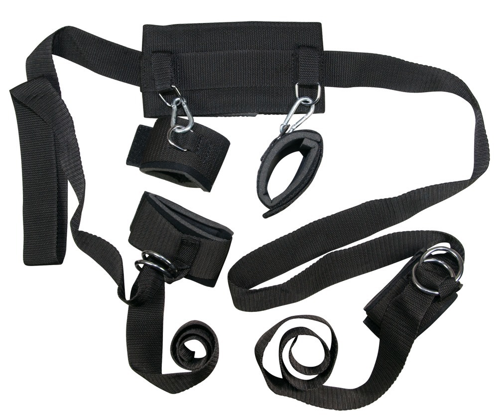 Neksteun (breedte 10 cm) verbonden met enkelsteunen door middel van twee banden (lengte 155 cm elk). Alle gordels zijn gewatteerd en hebben klittenbandsluitingen (in lengte verstelbaar).