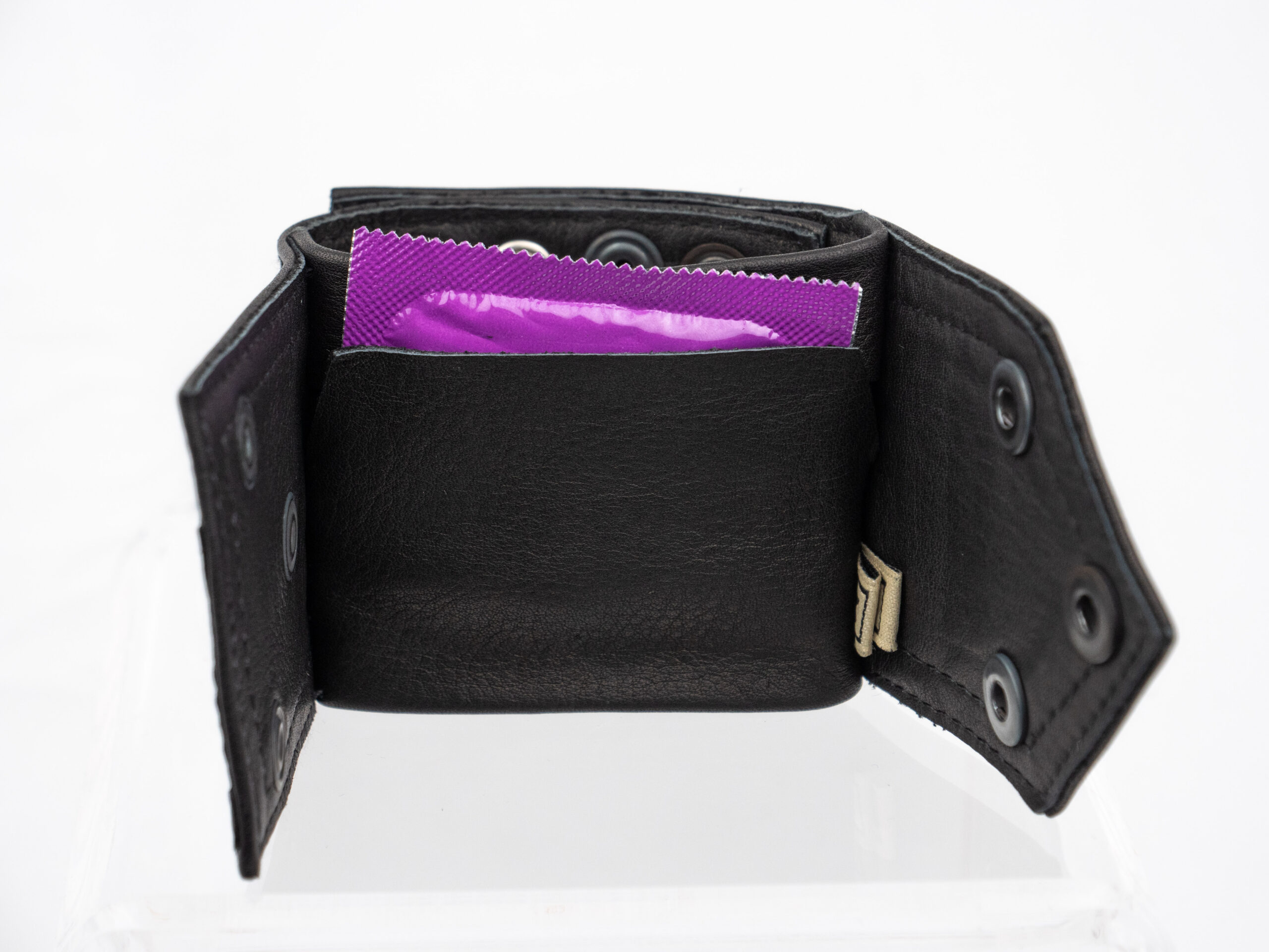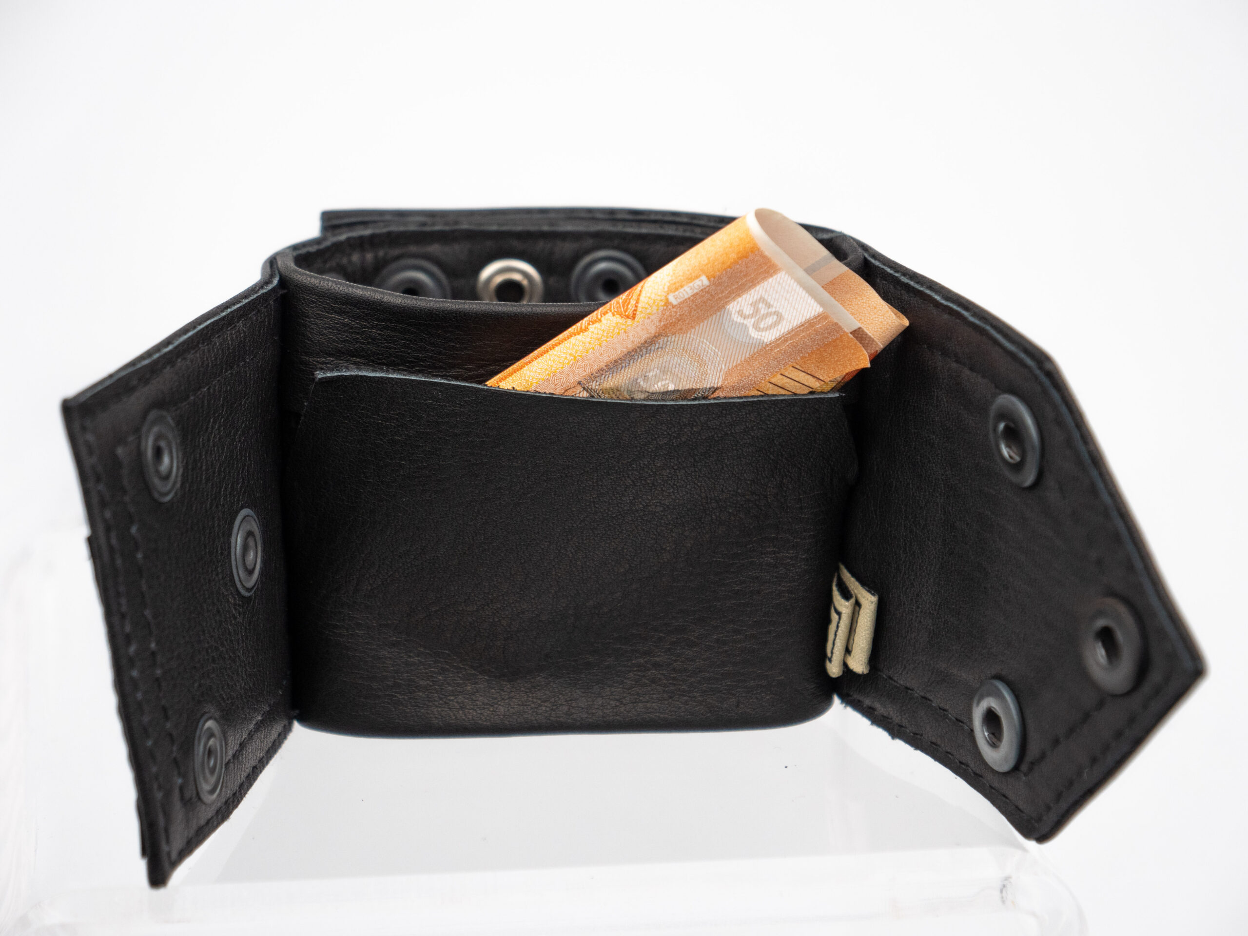 De cuffs zijn met drukknopen 1 maat te verstellen. Aan de de binnenkant zit een klein vakje. Hier kun je net wat muntjes, sleuteltjes of briefjes in kwijt.
