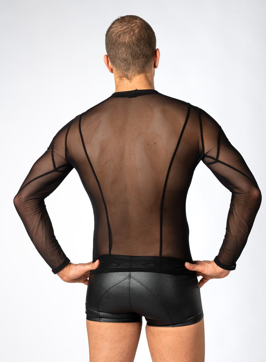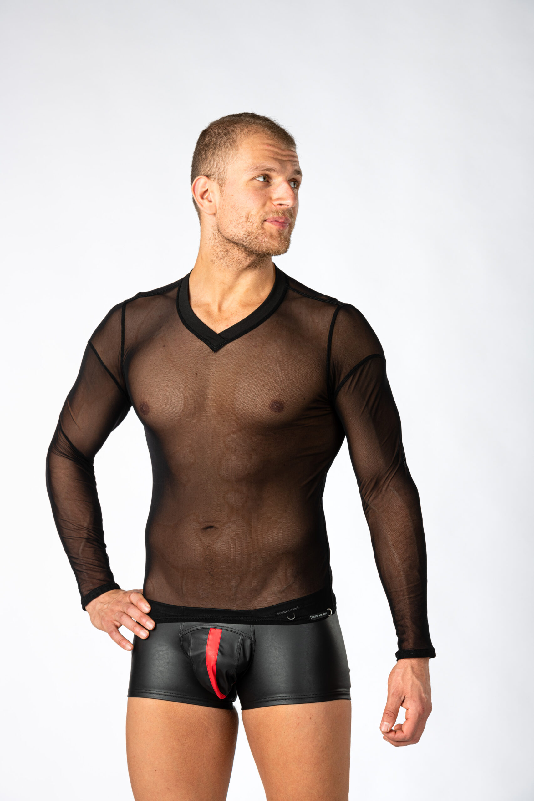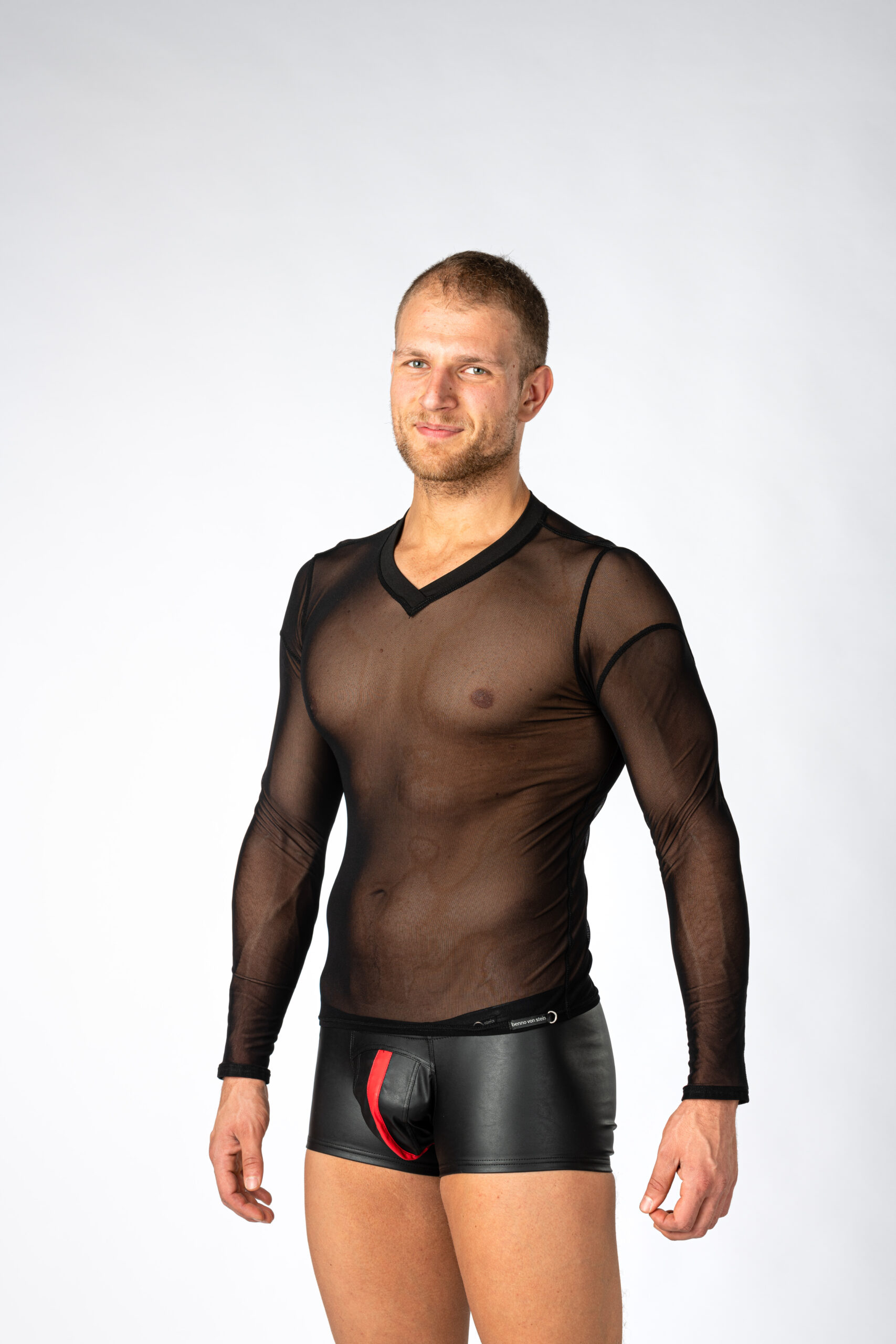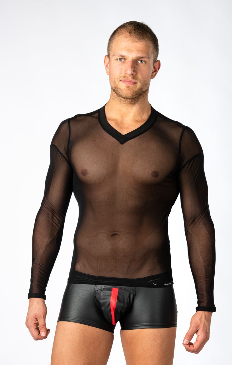 Dit spannende Stylan shirt van Benno Von Stein is volledig van gaas, heeft lange mouwen en een mooie V-hals.