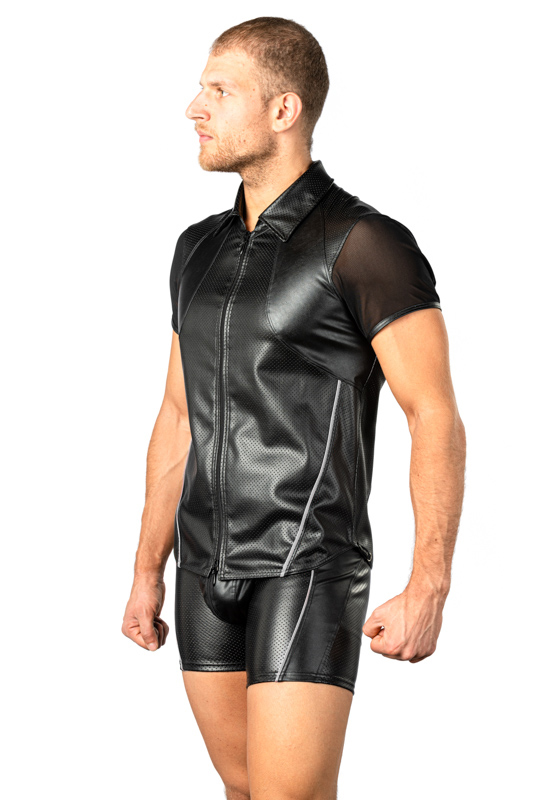 Het materiaal van het shirt Temyto van Benno Von Stein is van een zeer hoge kwaliteit en zeer zacht kunstleer met kraag en korte mouwen. Het is een mooie combinatie van geperforeerd en glad PU- leer.