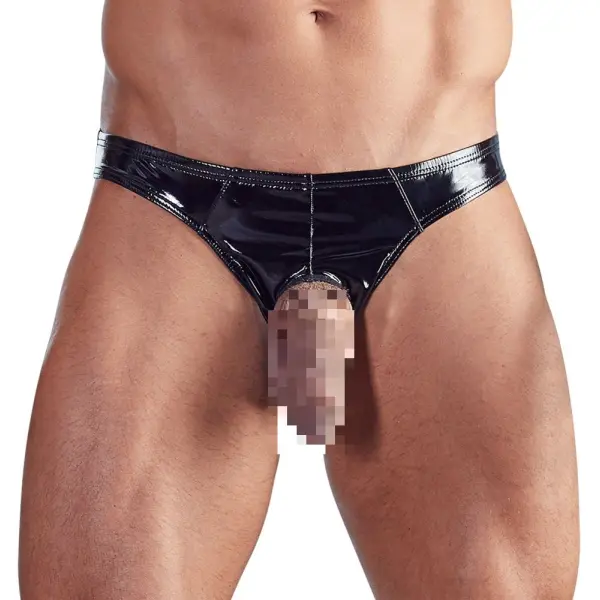 Kinky lak slip voor mannen met rekbare opening aan de voorkant