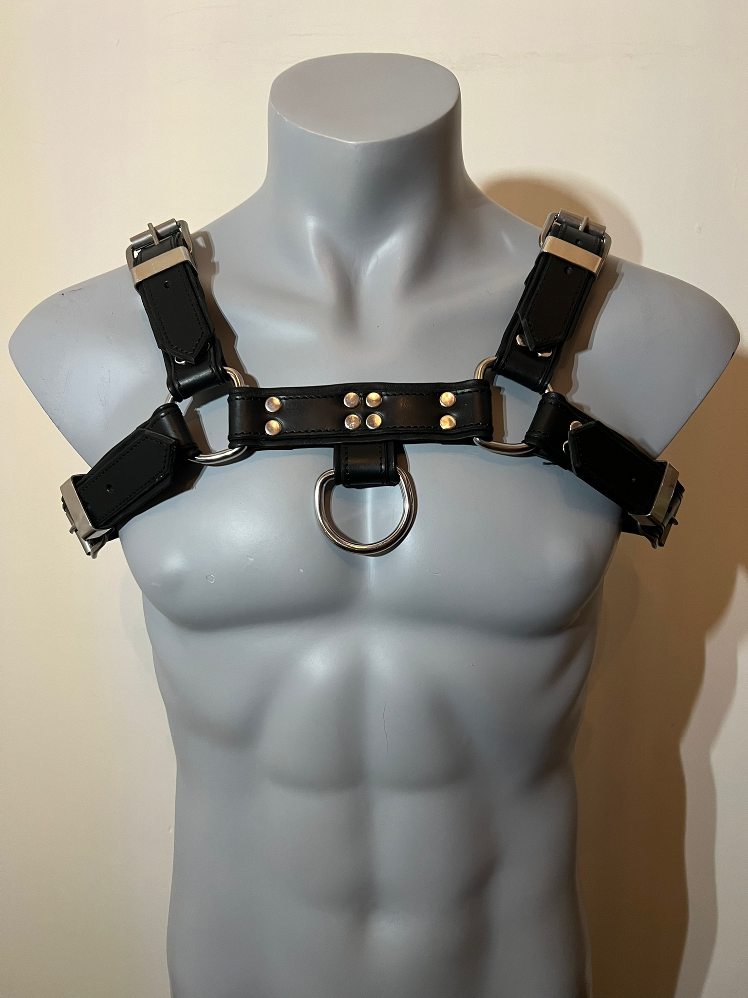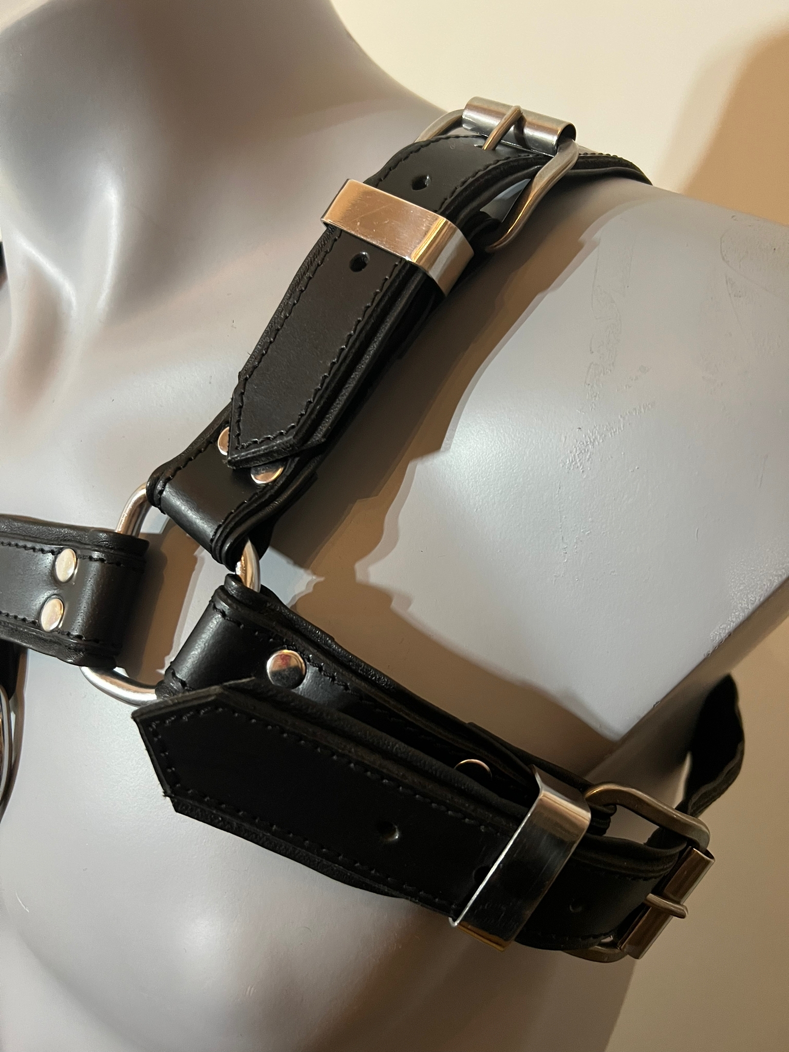 We hebben speciaal voor onze klanten een exclusief harnas ontwikkeld. Dit harnas is gemaakt van rundleer en tegengestikt met soepel kalfsleer. Daarnaast hebben we geborsteld RVS gebruikt voor alle metalen delen zodat het geheel een luxe uitstraling heeft gekregen. Met dit borstharnas van echt leer ben jij klaar voor elk spannend feestje! Het harnas is te verstellen aan 4 kanten, zodat deze voor ieder een ideale fit is!