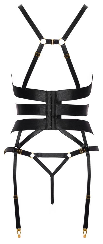 De voorkant van de bustier heeft zes brede straps die zorgen voor een krachtig, corset-achtig effect en jouw silhouet prachtig accentueren. Aan de achterkant lopen deze over in drie straps, wat zorgt voor een spannende en meer open uitstraling terwijl de pasvorm stevig en ondersteunend blijft.
