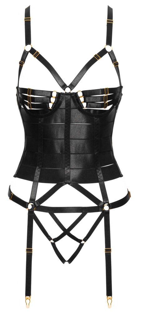 Deze luxe en gedurfde lingerie set van Cottelli combineert elegantie met een uitgesproken, verleidelijke uitstraling. De set bestaat uit een Jarretel Bustier en een bijpassende string en is ontworpen voor vrouwen die houden van een krachtige en stijlvolle look.