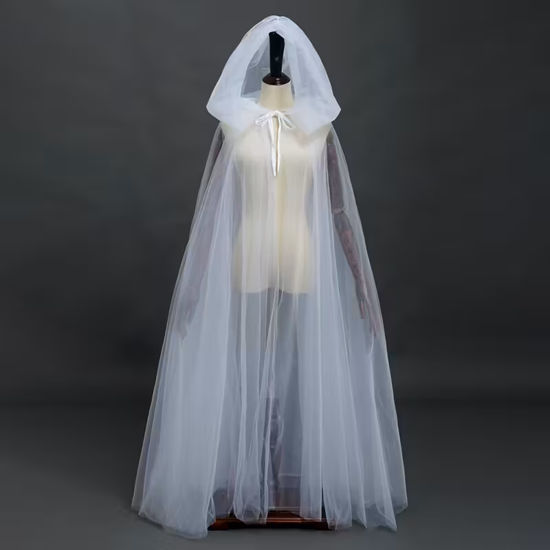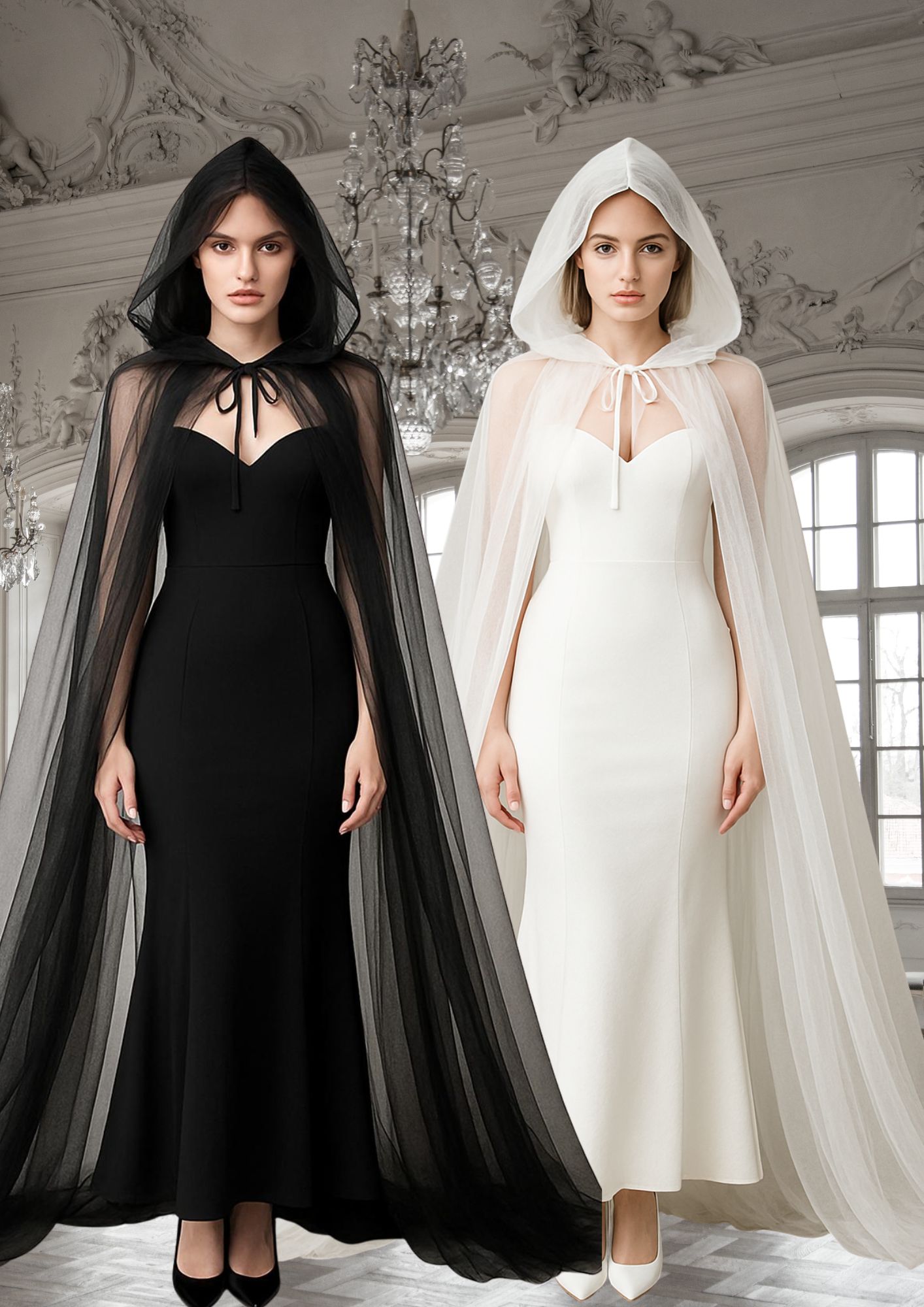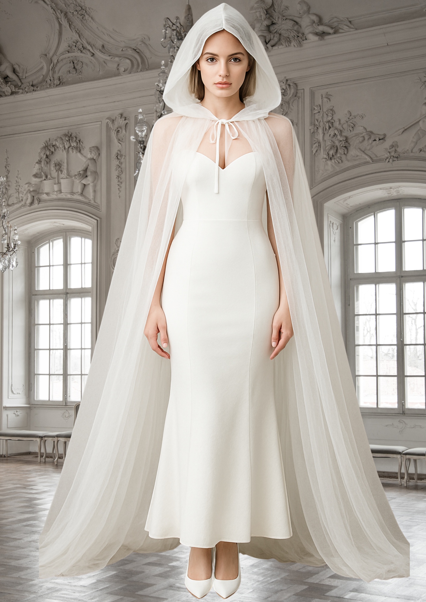 Cape Specialist doorzichtige gaas cape met capuchon in wit