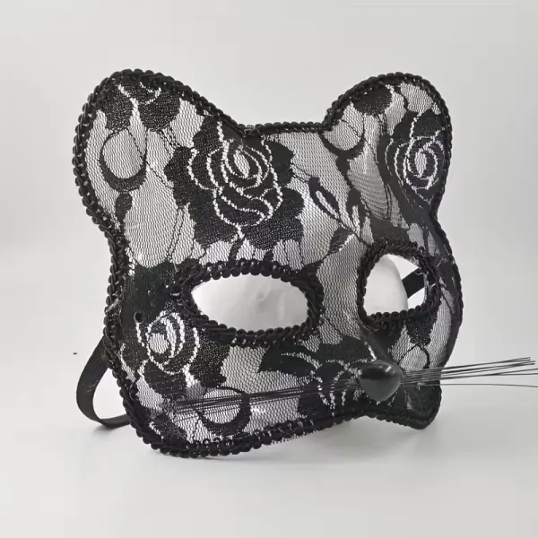 Wil je onherkenbaar verschijnen, maar wél alle aandacht trekken? Dan is dit elegante zwarte katten masker jouw geheime wapen. Het masker valt op door de katten oortjes, neusje en doorzichtige snorharen. Gemaakt van lichtgewicht kunststof met een kanten print en een strik lint, zodat het comfortabel blijft zitten – hoe wild de avond ook wordt.