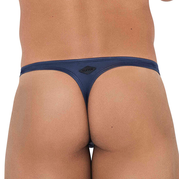 De string is gemaakt van blauw wetlook. De kwaliteit blijft mooi en is kleurvast. Het speciale vak voor de edele delen zorgt voor ultiem comfort en geeft ook nog eens een geweldige uitstraling. Aan de achterkant komt het Clever logo terug.