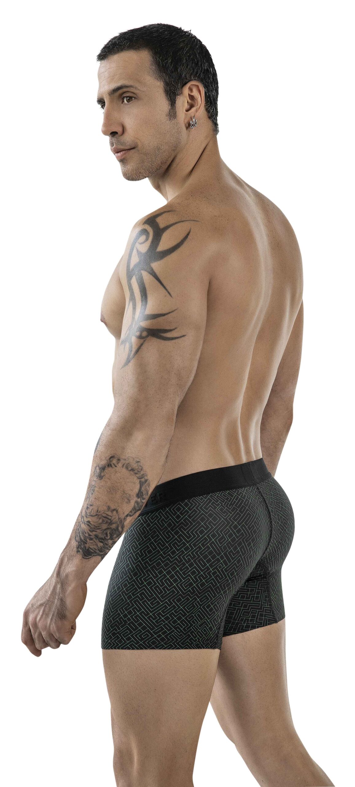 De Clever Laberin Trunks is een trendy zwarte boxershort met subtiele doolhofprint en een perfecte pasvorm. Het heeft een brede elastische band aan de bovenkant met het Clever logo.