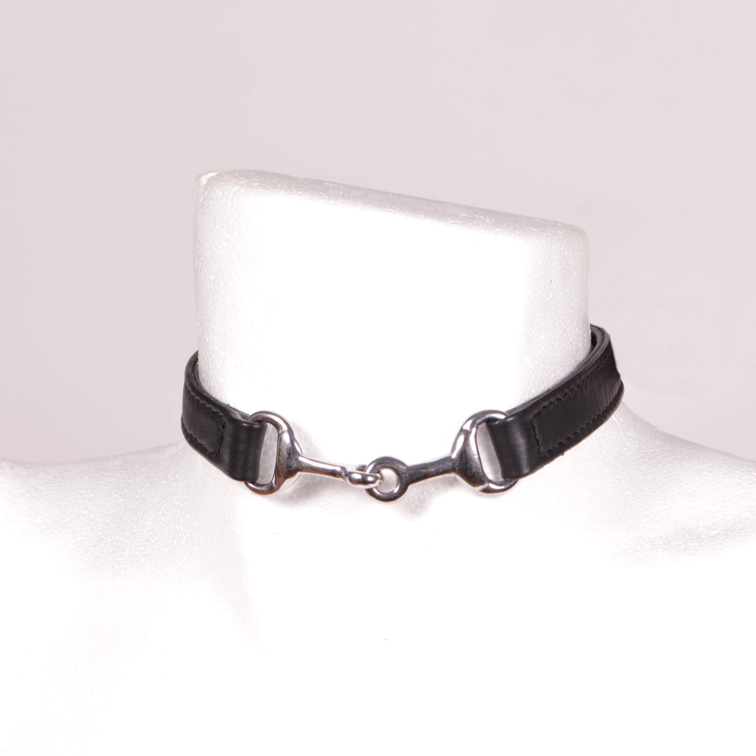 Deze bijzondere collar met een klein paardenbitje wordt speciaal voor Clubwear Company gemaakt in India. Uitgevoerd in prachtig lamsleer dat ook heel fijn aanvoelt. Sluit aan de achterzijde met een gesp.