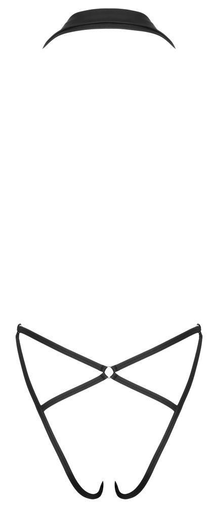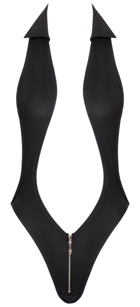 Deze supersexy body met een classy matte look heeft een adembenemende diepe halslijn met een kraagje. De achterzijde heeft alleen wat straps over de billen. Er zit ook nog een rits in het kruis..