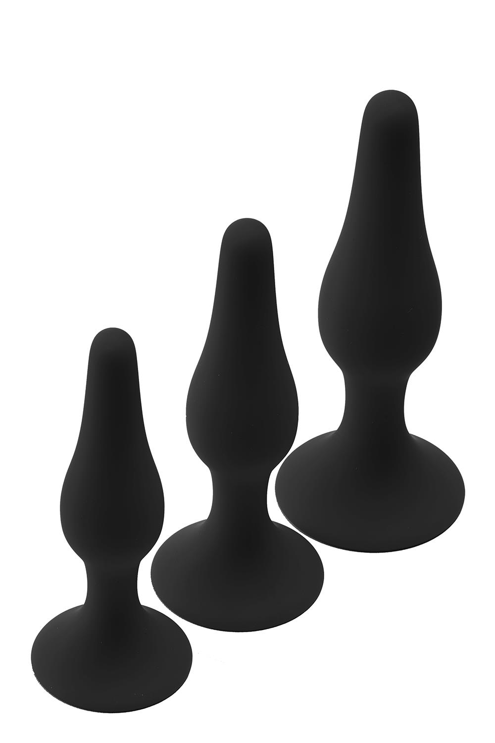 Deze set bevat 3 anaal pluggen in 3 verschillende maten. Elke plug is gemaakt van siliconen, wat zacht aanvoelt en heeft een zuignap aan de onderkant voor handsfree gebruik. Een set met verschillende maten is perfect voor degenen die de grootte van de pluggen willen variëren en voor degenen die willen trainen van klein naar groot. Geniet van anaal plezier met een verleidelijke uitstraling!