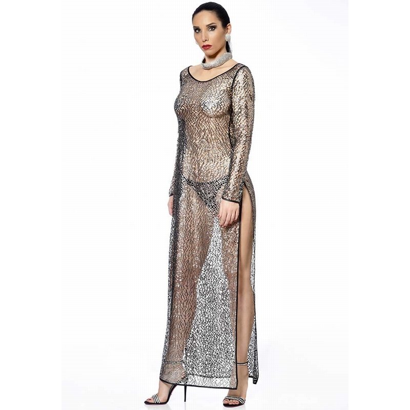 Door de mooie uitvoering in zilverkleur en met de hoge splitten is deze jurk een lust voor het oog en zal het alle vrouwelijke vormen van jouw lichaam accentueren. Speel het spel van de ultieme verleiding en draag hieronder bijvoorbeeld een van onze sexy lingeriesets.