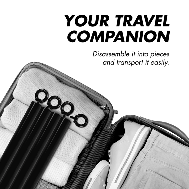 De bar is eenvoudig te demonteren en daardoor gemakkelijk mee te nemen, ideaal voor gebruik thuis of op reis. Dankzij de extreem sterke constructie is hij geschikt voor uiteenlopende posities en verschillende niveaus van spanning en weerstand.