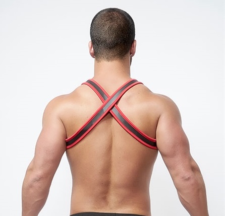 Prachtig borstharnas van neopreen. Ideaal te combineren met heel veel kinky outfits.
