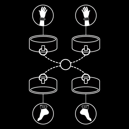 Deze set bestaat uit hand – en enkelboeien en een ring waaraan je de boeien kan vastzetten.