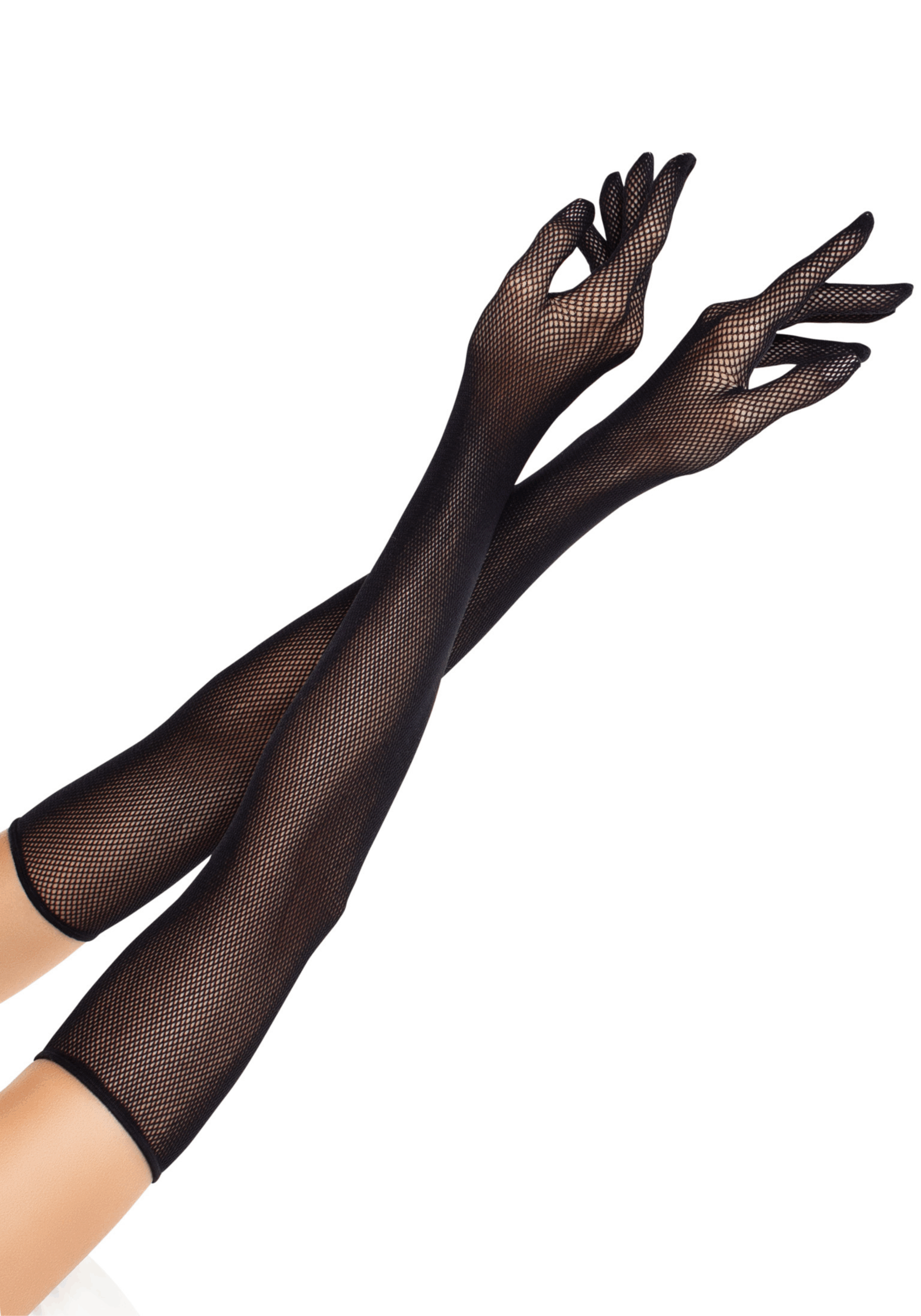 Perfect voor wie houdt van vintage glamour met een moderne twist. Deze opvallende handschoenen reiken tot boven de elleboog en zorgen voor een elegant, verlengd silhouet. Gemaakt van stretchy visnetstof die je huid subtiel laat doorschemeren voor een sensueel effect. Ideaal voor een burlesque look, gothic outfit of een spannende party night.