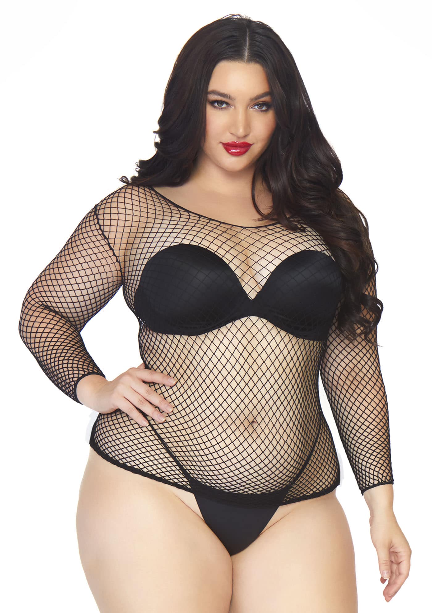 Leg Avenue – Top Visnet – Lange Mouw – Plus Size – Zwart