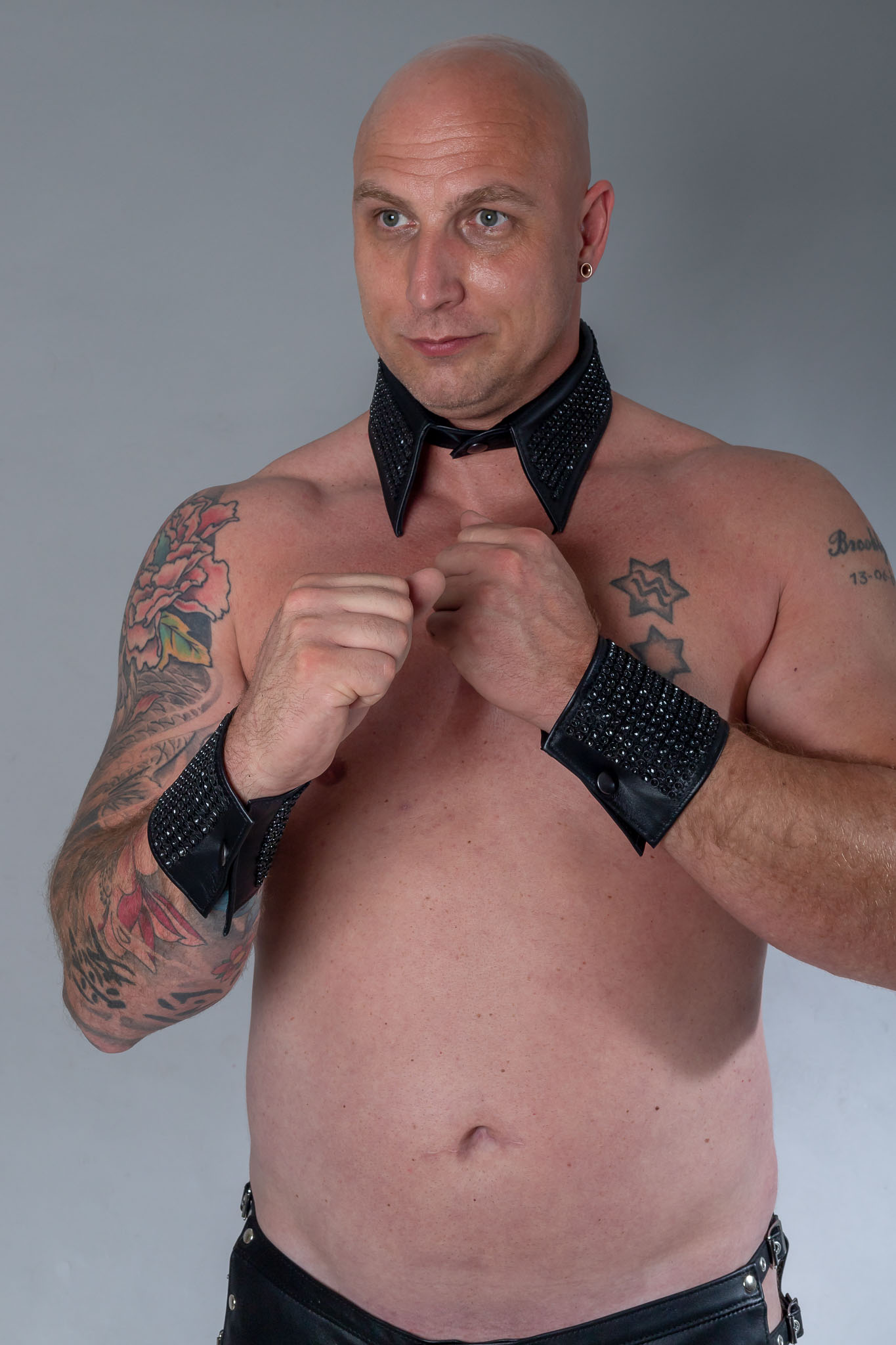 Stoere manchetten met strass die perfect gecombineerd kunnen worden met heel veel outfits. Je maakt het helemaal af met de bijpassende kraag met strass.