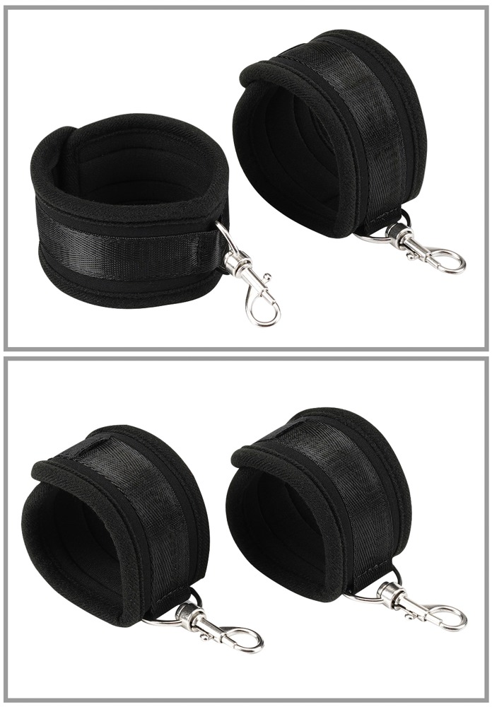 - 1 paar enkelboeien: 5,5 cm breed, 30 cm lang (verstelbaar) met snap hook