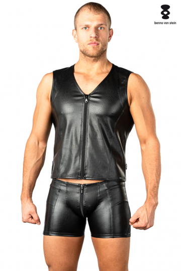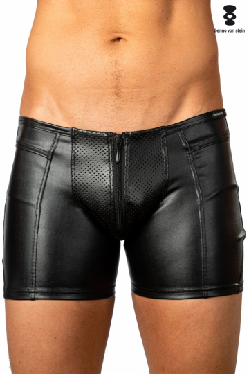 Als je graag kinky feesten bezoekt is de Short Boyjo van Benno von Stein de perfecte keus. De mooiste kwaliteit kunstleer is gebruikt om deze opvallende short te maken. Bij deze short wordt door middel van geperforeerd kunstleer de aandacht naar jouw belangrijke delen geleid…Dankzij de rekbaarheid heeft de short een perfecte pasvorm. Laat de wereld zien dat jij een echte Benno von Stein draagt!