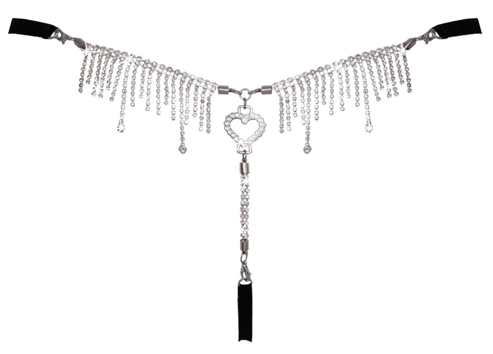 Luxe kanten string met strass hart en kettingen – Cottelli Collection