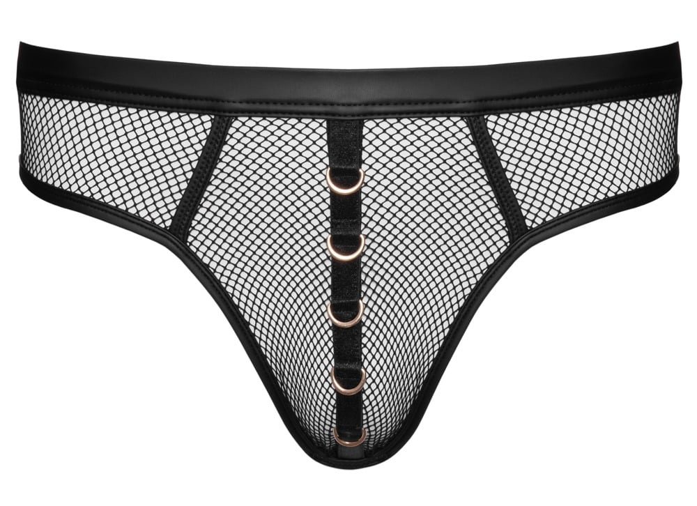 Mesh string met wetlook en ringen
