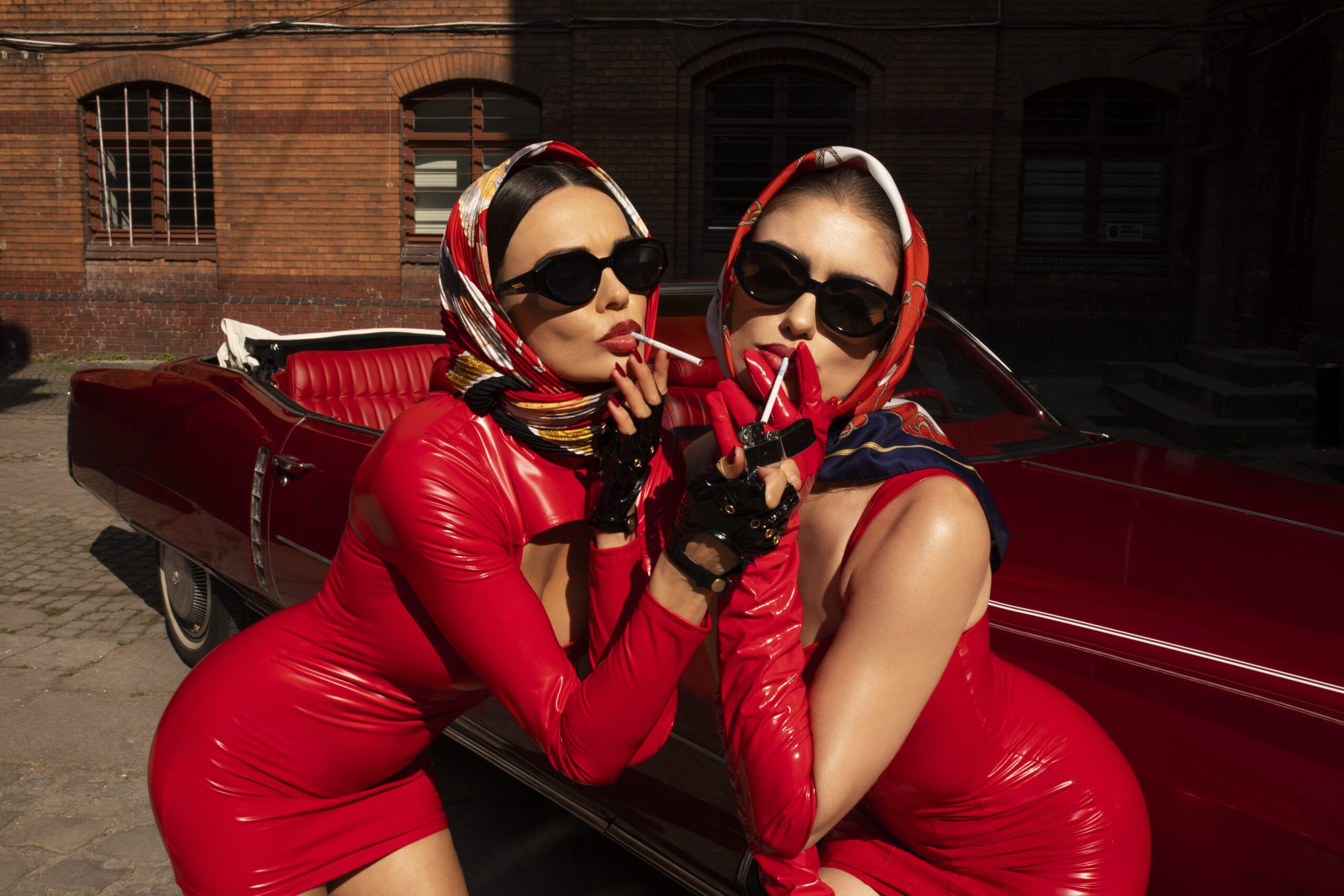 Deze mini jurk van Noir Handmade is gemaakt van strak aansluitend rood wetlook. Perfect voor de echte bombshell look; glamoureuze kleding, strakke jurken met diepe decolletés en rode lippen.