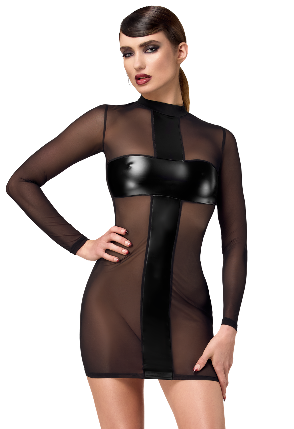 Noir Handmade – F369 – Crossfire Jurk – Gaas – Wetlook – Zwart