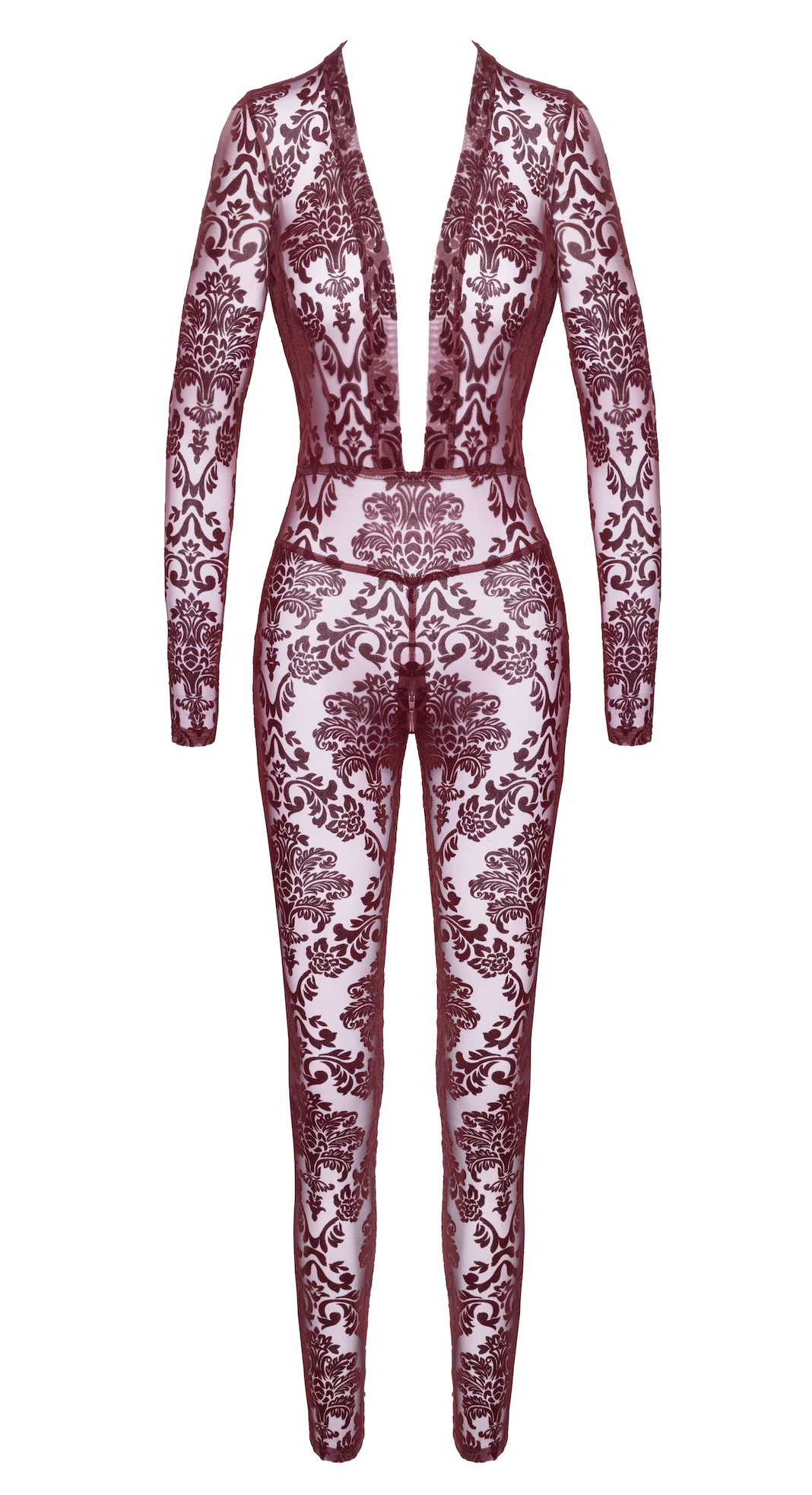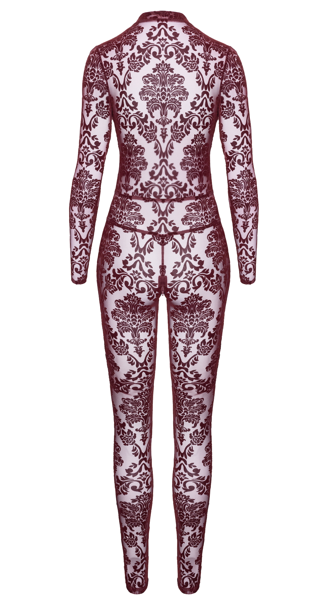 Noir Handmade – F382 – Kink Royal – Catsuit – Gaas – Flockprint – Rood
