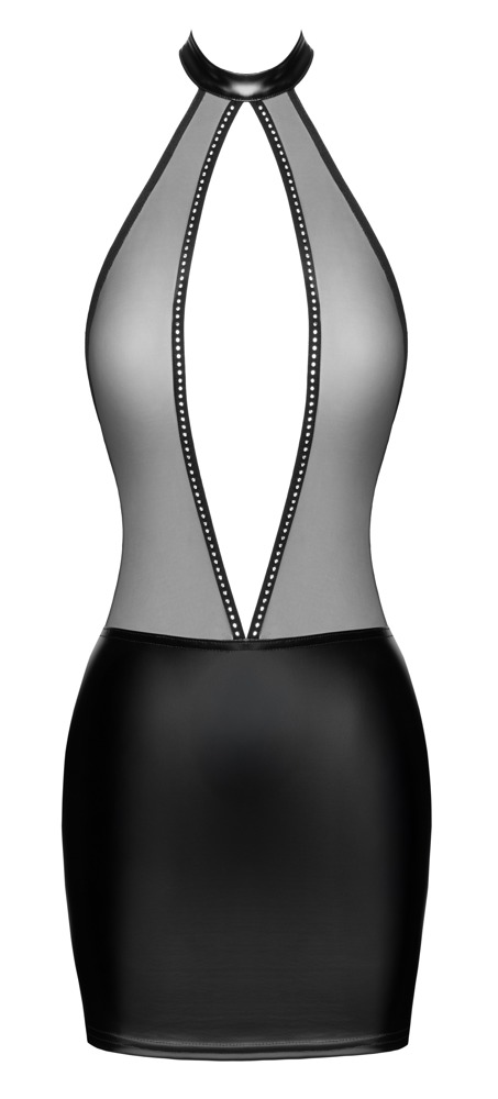 Deze verleidelijke mini jurk van Noir Handmade is een echte eyecatcher. Met een spannende mix van transparant powernet aan de bovenkant en glanzend powerwetlook in het rokgedeelte, geeft deze jurk je look precies de juiste dosis seksiness.