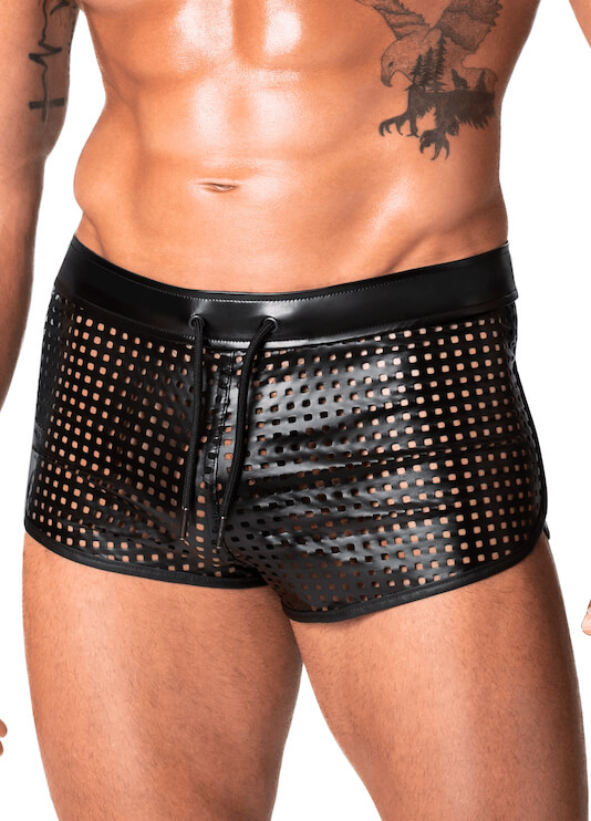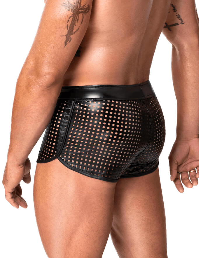 Het unieke geperforeerde wetlook trekt de aandacht en geeft een klein beetje zicht op jouw lichaam onder de shorts. Als dit geen teasen is!