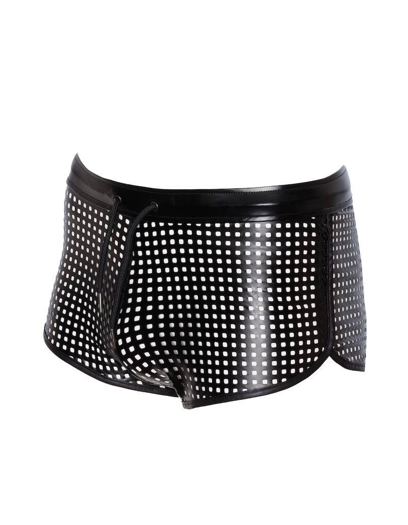 Het geperforeerde wetlook geeft een opvallend visueel effect en garandeert ventilatie. Kinky en tegelijk lekker luchtig, ideaal voor spannende feestjes. Draag de short zo of gecombineerd met een shirt of vest van wetlook.