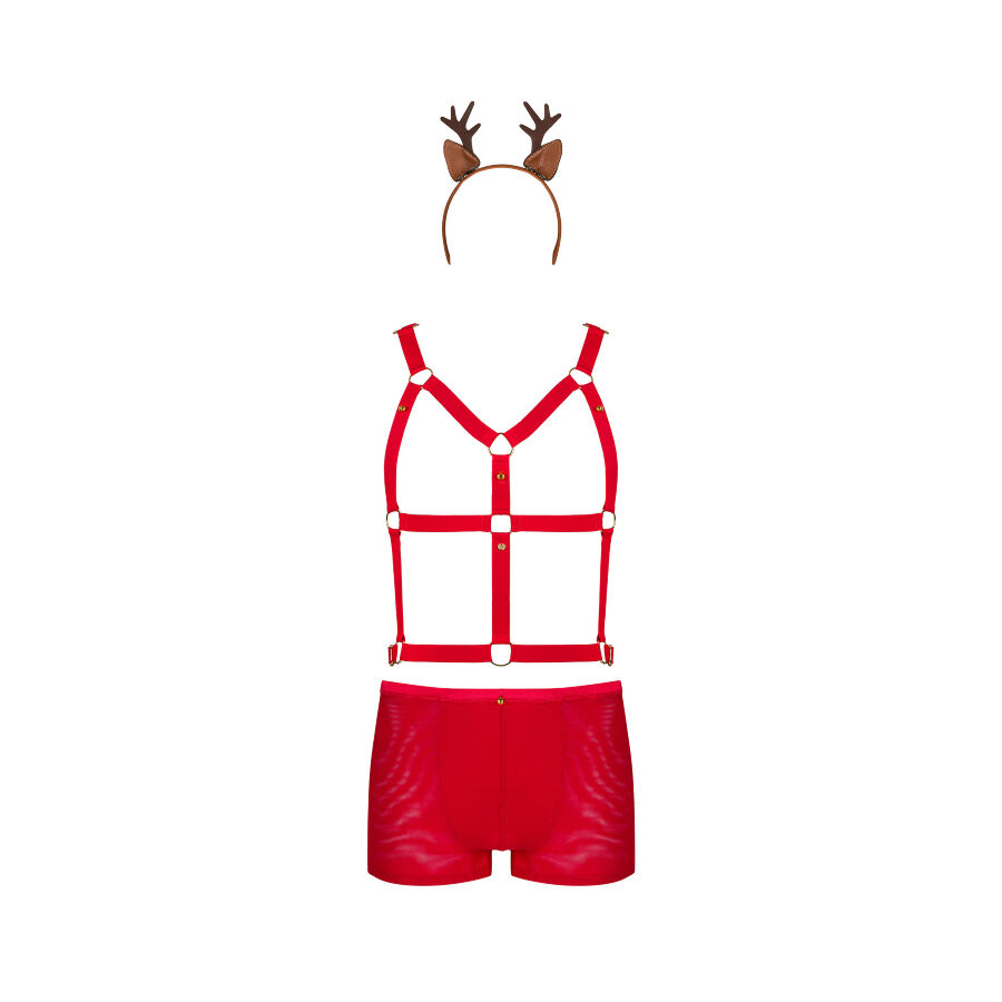 Laat je zien dat jij de sexy kerstman bent! Deze te gekke short heeft een borstharnas die aan de achterkant aan de short vastgemaakt kan worden. Een te gekke rendiergewei maakt deze geweldige outfit helemaal af.