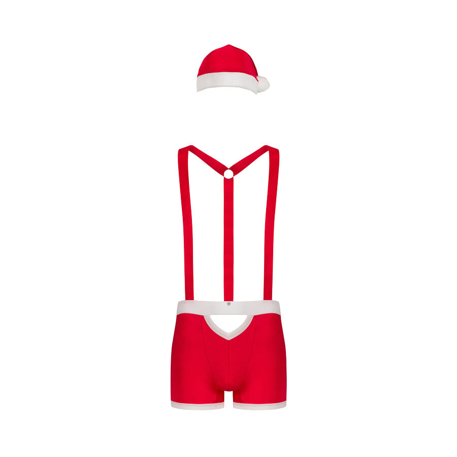 Laat je zien dat jij de sexy kerstman bent! Deze te gekke short heeft leuke bretels en een spannende vetersluiting aan de voorkant. Er zit ook nog een leuke kerstmuts bij.