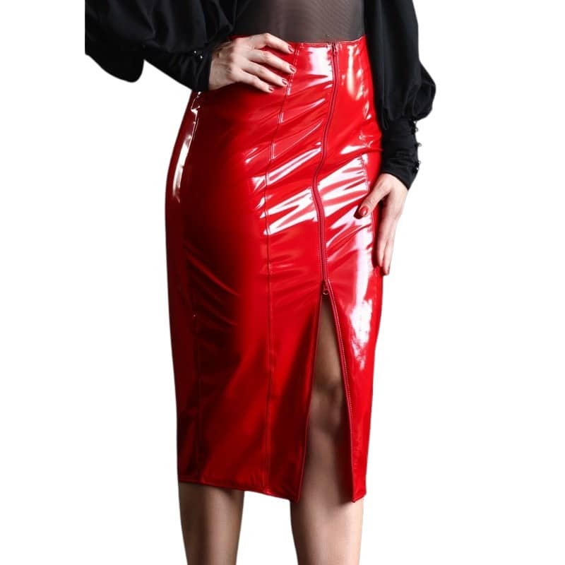 De Ornella Lak Rok uit de Tome 17 collectie van Patrice Catanzaro is een prachtige pencil skirt in opvallend rood lak. Het sluit fantastisch aan en heeft een spannende rits aan de voorkant.