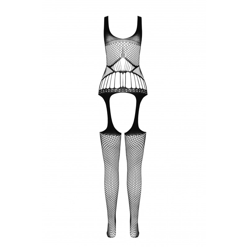 Een super sexy bodystocking met een prachtig opengewerkt motief. Het heeft jarretel kousen die met lange bandjes verbonden zijn aan het lijfje. De open cups maken deze bodystocking extra spannend!