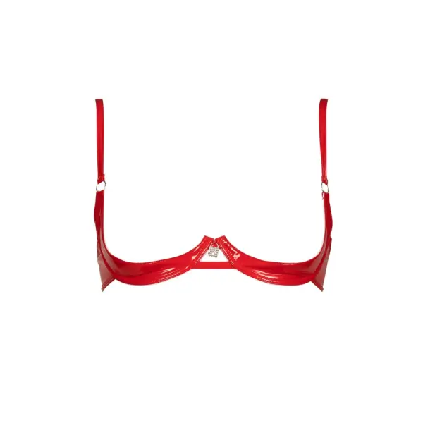 Annabelle Open Cup BH Lak van Patrice Catanzaro is een super kinky lak BH. De cups zijn half en de bandjes zijn verstelbaar. Er zit een kleine bedeltje in de vorm van een slotje aan de voorkant. De bijpassende string Annabelle heeft een bedeltje in de vorm van een sleuteltje.