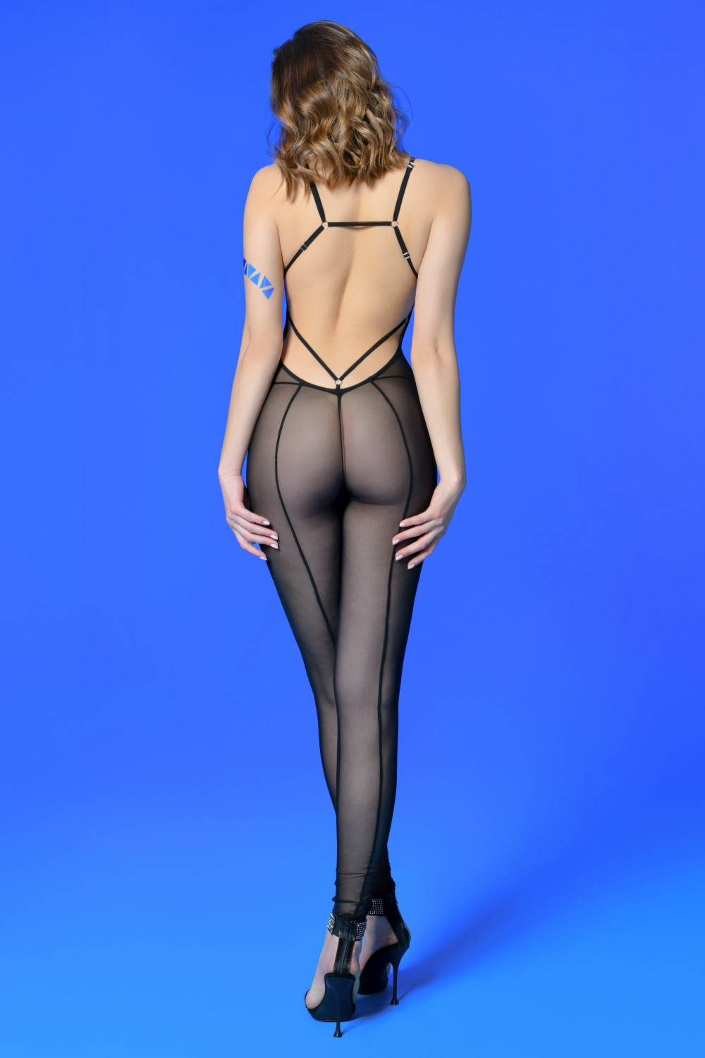 Noir Handmade – Transparante Catsuit – Kruisloos – Gaas met Wetlook – Zwart