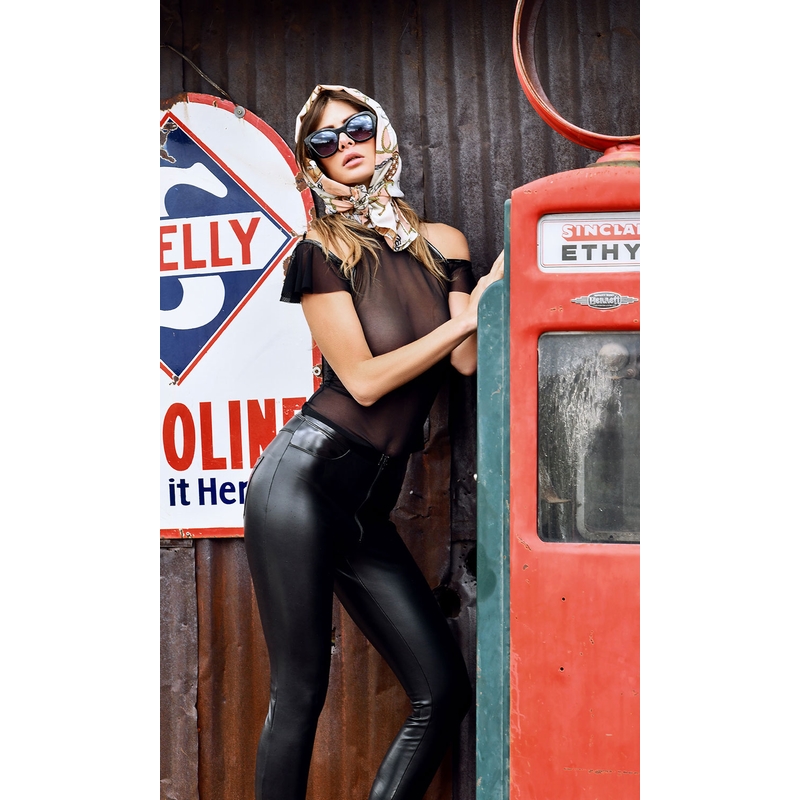 Deze prachtige top van opvallend sexy gaas is mooi afgewerkt met lakaccenten. Deze top geeft je een hele spannende en verleidelijke look. En is ook nog eens goed te combineren met heel veel shortjes, rokken of broeken.