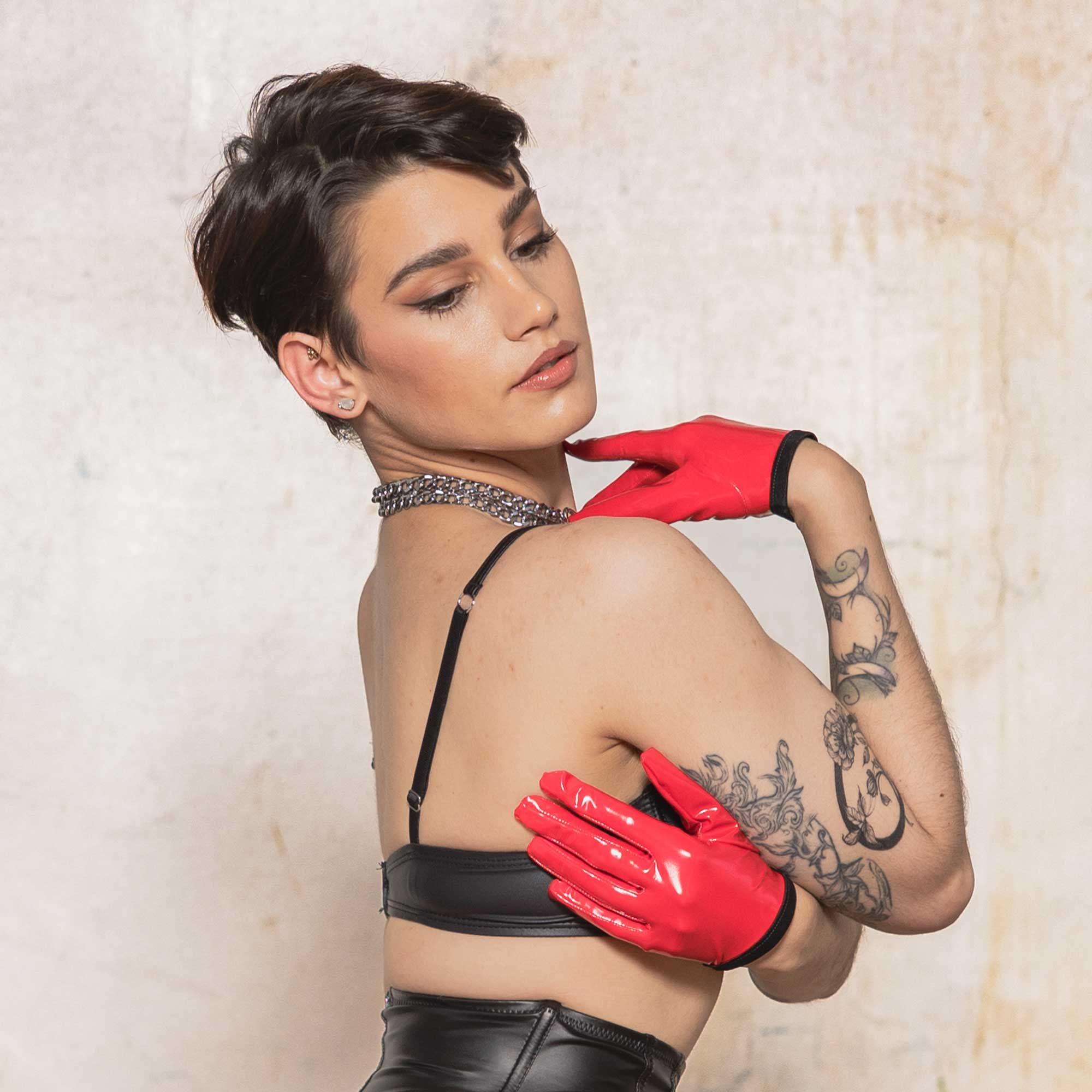 Deze handschoenen kun je perfect dragen om je lak jurk of lak setje spannender of sexier te maken..