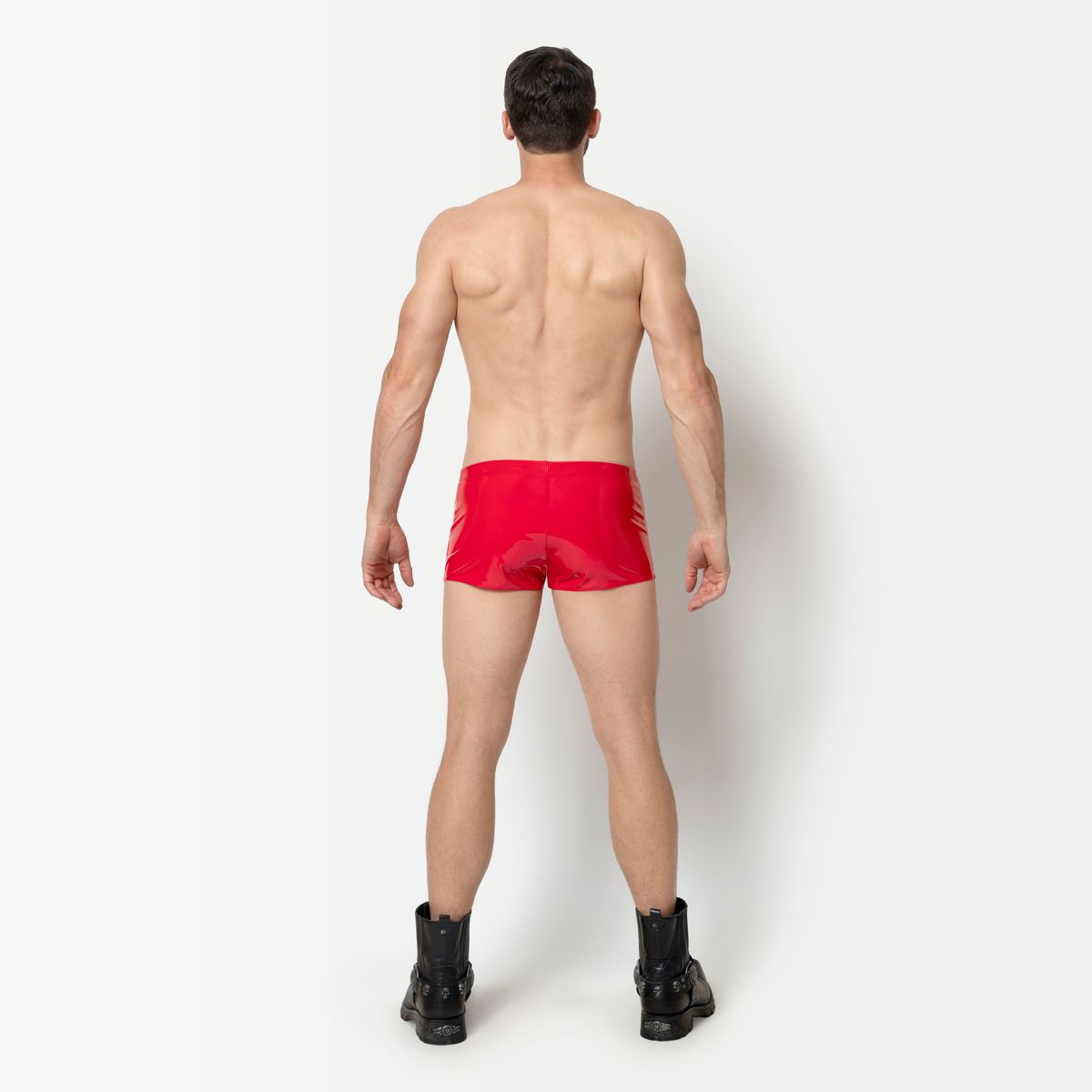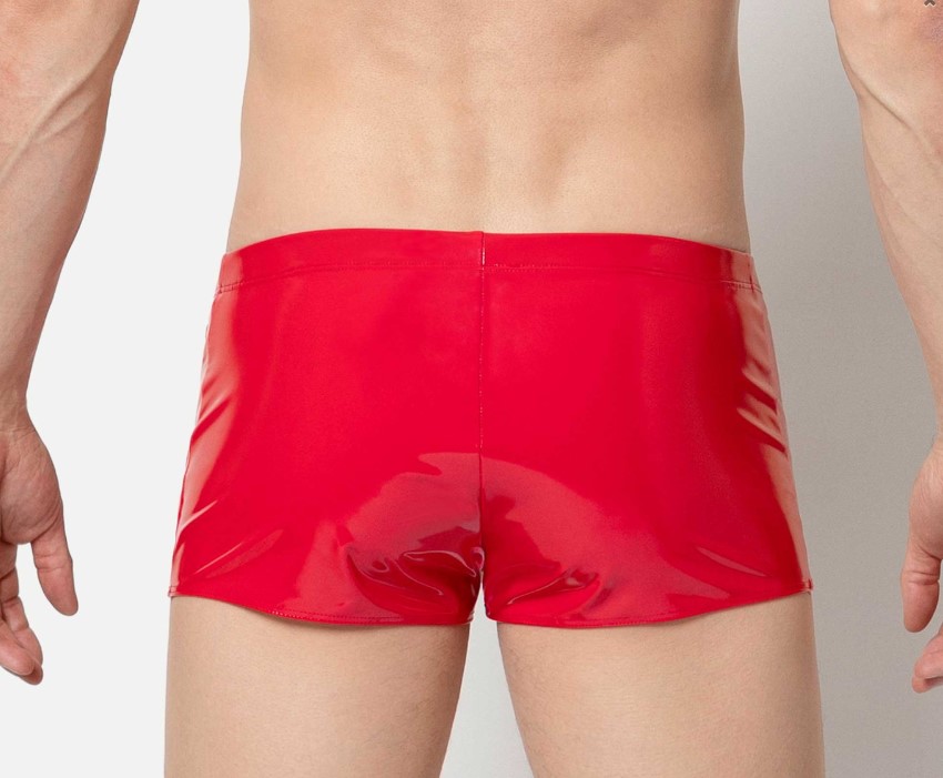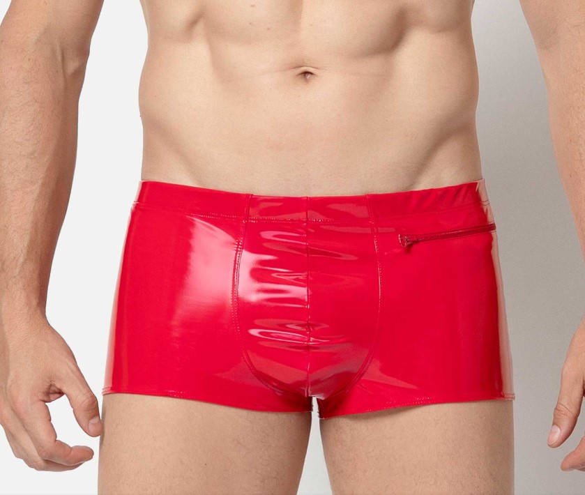 De complete boxer is gemaakt van meest luxe en comfortabele rode stretch lak die er te krijgen is. Op de linkerheup zit een zakje met rits, handig voor bijvoorbeeld een sleuteltje of muntjes.