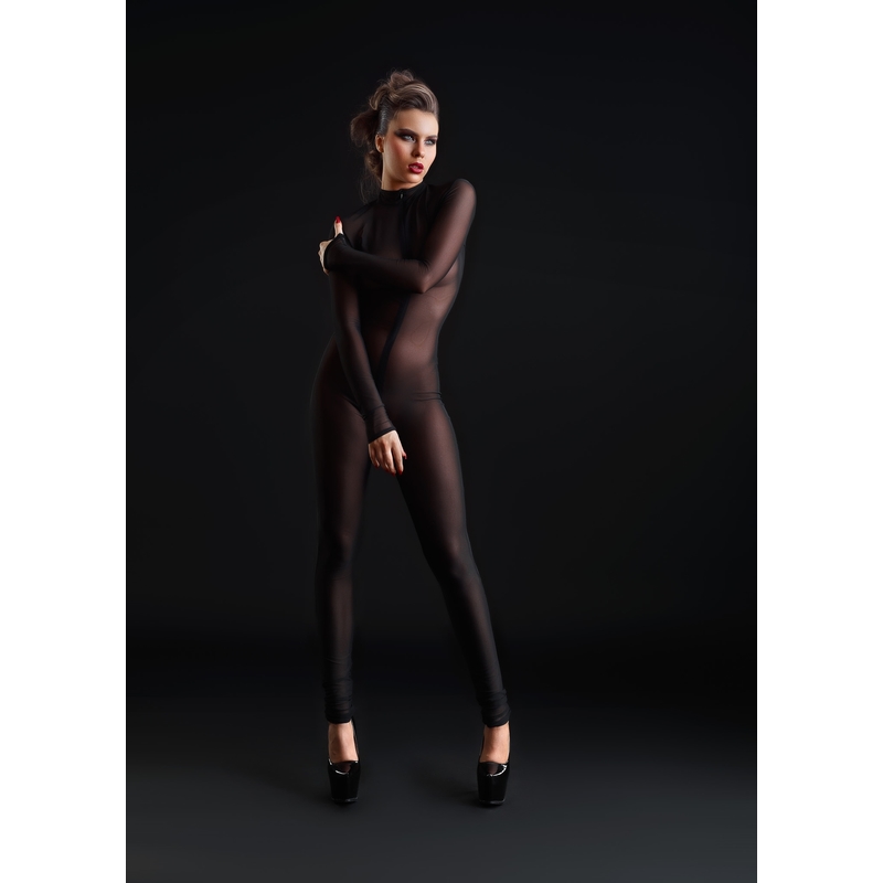 Noir Handmade – Transparante Catsuit – Kruisloos – Gaas met Wetlook – Zwart