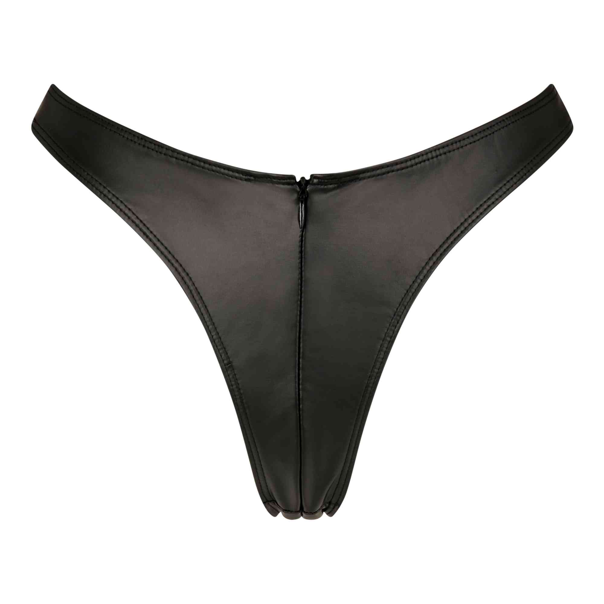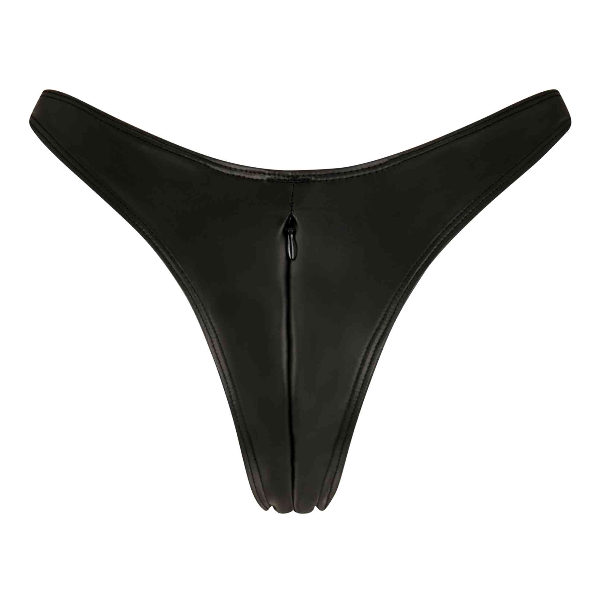 Deze prachtige wetlook string heeft een onzichtbare ritssluiting aan de voorkant en is van de Tonnerre collectie.
