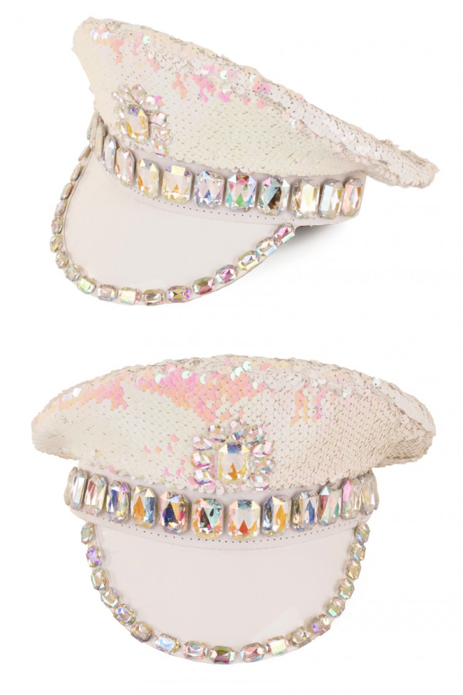 Deze witte pet met pailletten en strass maakt jouw look helemaal compleet!